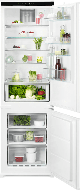 De ColdSense technologie van de AEG TSC7G181DS zorgt ervoor dat het apparaat altijd de juiste temperatuur heeft. Wanneer je de koelkastdeur opent en sluit, zorgen de sensoren voor de juiste binnentemperatuur. Zo blijven jouw etenswaren extra lang goed. Met de GreenZone blijven jouw groenten en fruit langer vers. In deze vershoudzone pas je namelijk gemakkelijk de vochtigheid aan. Dankzij de No Frost-functie is het ontdooien van het apparaat niet nodig. Daarnaast maak je de 4 uitneembare platen zonder moeite schoon. Zo is het onderhouden van dit apparaat erg gemakkelijk. De koelkast geeft vanzelf een seintje wanneer je 'm te lang open laat staan. Zo verbruik je niet ongemerkt veel energie.