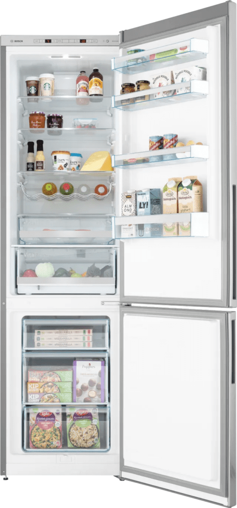 <p>Met de Bosch KGE39ALCA bespaar je op je energierekening, dankzij zijn milieuvriendelijke energieklasse van C. Je vult deze vrijstaande koel-vriescombinatie met de wekelijkse boodschappen voor 3 tot 4 personen. Je etenswaren worden op constante temperatuur gehouden door de FreshSense sensoren, zodat alles zo lang mogelijk houdbaar blijft. Wanneer je de overgebleven curry in het koelgedeelte bewaart, komen de geurtjes hiervan niet in het vriesgedeelte. Deze heeft namelijk een aparte luchtstroom. Ga je een flinke ijstaart invriezen? Gebruik dan de BigBox lade met extra ruimte.</p>
