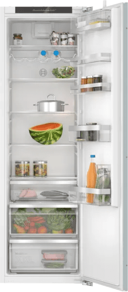 Je bewaart je verse tomaten, champignons en biefstuk langer in de Bosch KIR81ADD0 1-deurs inbouw koelkast. In de VitaFresh XXL lade blijven groente en fruit langer vers door de juiste luchtvochtigheid. In de 0 graden zone houd je vis en vlees langer goed dankzij de lagere temperatuur. Je verdeelt je boter, kwark en pot mayonaise over de 4 plateaus en op het flessenrek heb je plek voor al je flessen wijn en frisdrank. De Vario-omvormer past zich aan aan de temperatuurveranderingen. Zo koelt hij stiller en energiezuiniger als de deur al een langere tijd dicht is. Met een geluidsniveau van 34 decibel geen last van lawaai en hoor je hem niet aanslaan tijdens het film kijken.
