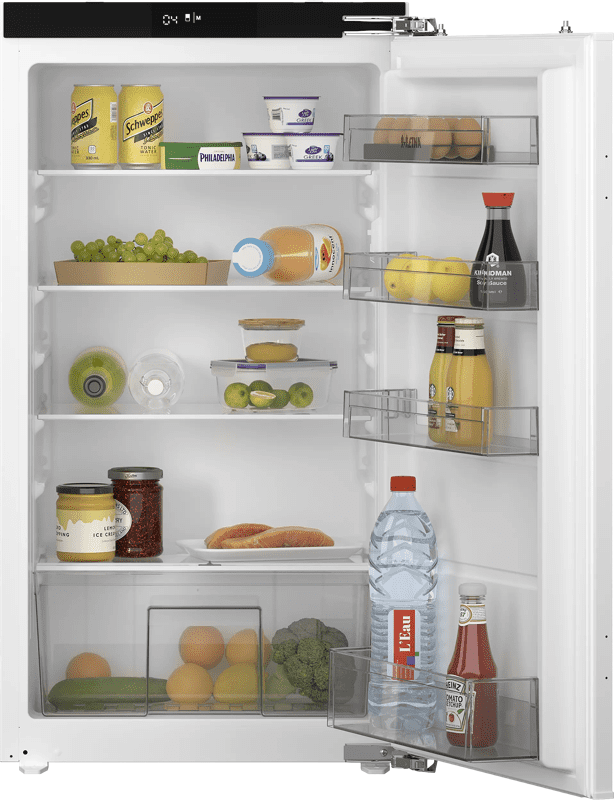 Je hebt geen last van geluid met de ETNA KKD7102T. De inbouw koelkast heeft een geluidsniveau van 32 decibel. Je hebt zo geen last van gezoem tijdens het thuiswerken of wanneer je `s avonds een film kijkt. Met een inhoud van 154 liter en 3 plateaus deel je jouw koelkast flexibel in. Heb je een grote pan stoofvlees of een hoge fles smoothie? Dan verstel je de plateaus in hoogte, zodat je meer ruimte maakt. In de deurvakken bewaar je flessen limonade, potten pesto en tubes knoflooksaus. Onder in de koelkast zit de groentelade, waar je zelf de luchtvochtigheid aanpast via een schuifregelaar. Zo blijven je verse wortels en blauwe bessen langer goed.