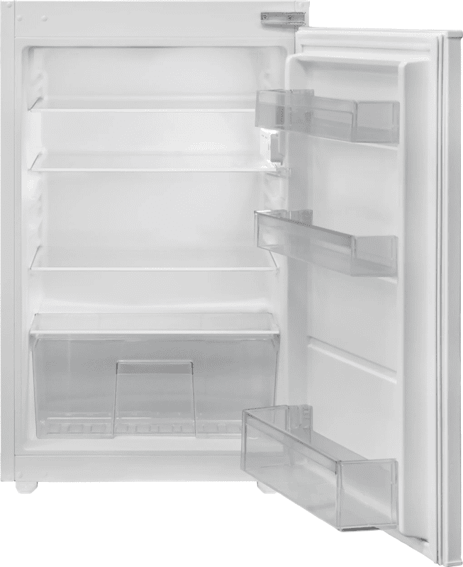 De Inventum IKK0882S is een 1-deurs inbouw koelkast met sleepdeursysteem. Je bewaart hierin de boodschappen voor ongeveer 1 tot 2 personen. Dankzij het lage geluidsniveau van 32 decibel plaats je deze koelkast in een open keuken, studio of appartement zonder dat je last hebt van een zoemend geluid. Je stuk kaas, pak boter en pot mosterd verdeel je over de 4 plateaus. Als je extra plaats moet maken voor bijvoorbeeld een pan soep, haal je makkelijk één van de planken uit de koelkast. Onder in de koelkast is er ruimte voor je groente en fruit in de groentela. De deur is voorzien van handige rekjes waar je je kleinere boodschappen zoals eieren en pot augurken in kwijt kan.