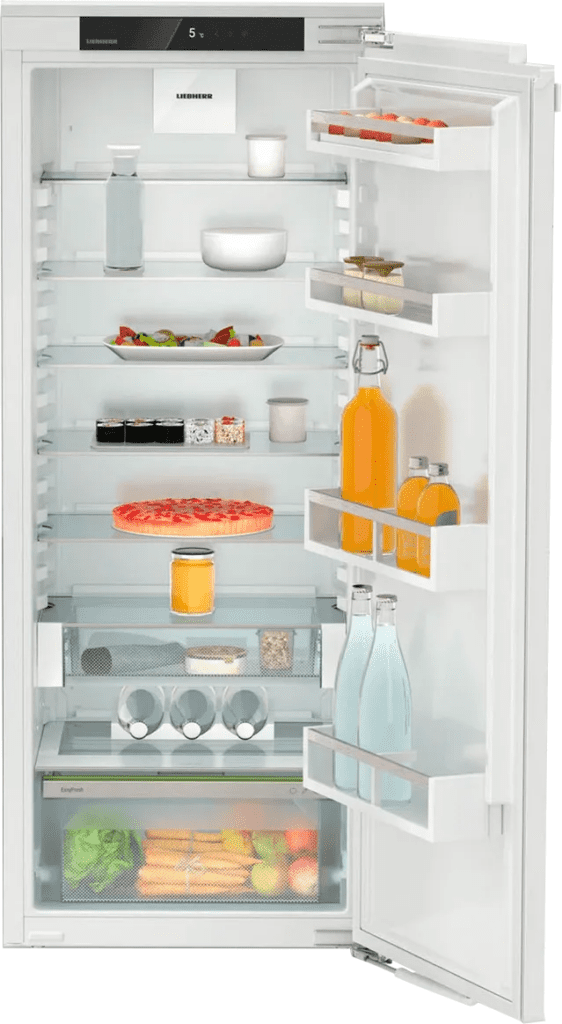 In de Liebherr IRe 4520-20 is de temperatuur op alle plateaus even koud. Dankzij de PowerCooling heeft deze inbouw 1-deurs koelkast een gelijkmatige en constante temperatuur. Ondertussen reinigt het geïntegreerde FreshAir filter de lucht in de koelkast, zodat je geen onaangename geurtjes bij je boodschappen ruikt. In de koelkast is genoeg ruimte voor je wekelijkse boodschappen. Heb je verse aardbeien en champignons van de markt? Bewaar ze dan in de EasyFresh vershoudzone. De luchtvochtigheid is hier hoger, zodat je boodschappen langer vers blijven. En zodra je de deur sluit, zorgt het SoftSystem voor een zachte sluiting. Zo voorkom je dat de deur te hard dichtvalt.
