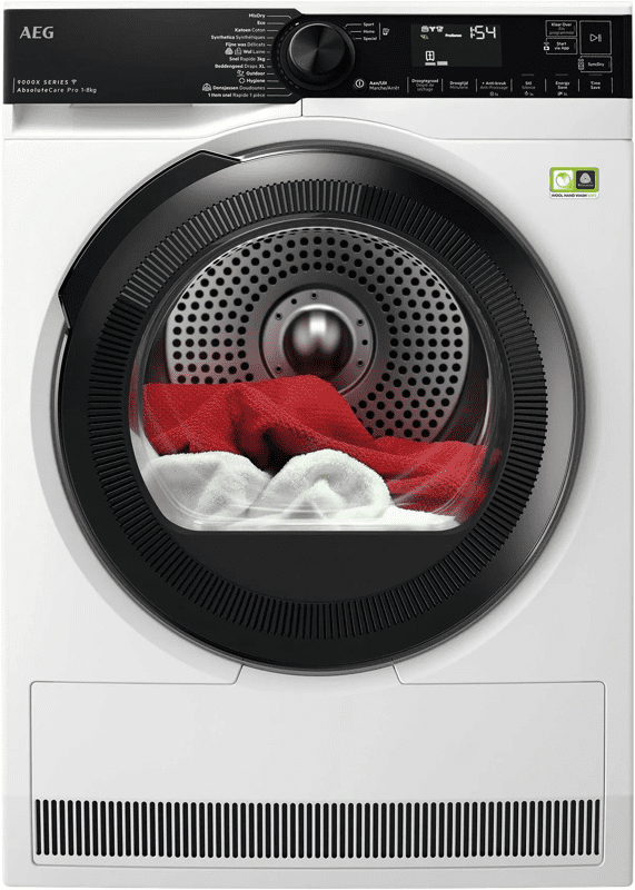 Met de AEG TR98V64C AbsoluteCare Pro warmtepompdroger kies je dankzij SmartDry tussen een snellere droogtijd of een lager energieverbruik. Handig, wanneer je de ene keer snel droge kleding nodig hebt en de andere keer liever meer energie bespaart. De energieklasse A wasdroger koppel je dankzij SyncDry aan je AEG wasmachine met bediening via een app. Zo pas je het droogprogramma aan op het laatst gekozen wasprogramma. Met 8 kilogram vulgewicht heb je ruimte voor het beddengoed van één tweepersoonsbed. Met de 3D scan droog je ook veilig je favoriete donsjas of bodywarmer, doordat de droger het vocht van binnen en buiten scant. Zo past het programma zich automatisch aan en verdeelt de warme lucht zich gelijkmatig. Je jas blijft hierdoor langer mooi.