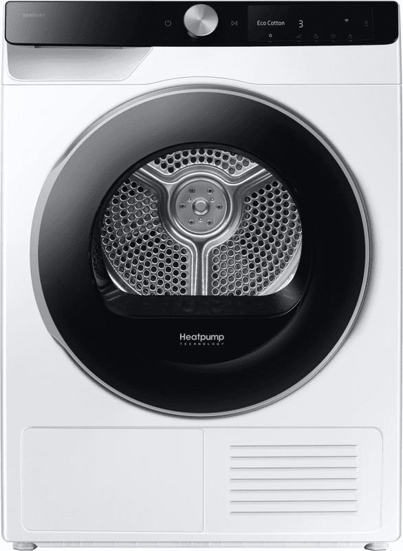 Je bespaart flink op energiekosten met de Samsung DV90DG6845LKU3 droger. Dankzij energielabel A+++-20% bespaar je tot wel € 128,- energiekosten per jaar. Met 9 kilogram vulgewicht heb je veel ruimte voor grote ladingen beddengoed en kleding. Dankzij AI Dry+ meet de droger welke soort stof er in de trommel zit en past hier het programma op aan. Met het Super Speed programma droog je een halfvolle trommel in maar 81 minuten. Zo heb je snel een droge outfit. Heb je last van allergieën? Kies dan voor Hygiene Care. Dankzij de hogere temperatuur verwijdert de droger bacteriën en allergenen grondig uit je schone lakens. Met de SmartThings app download je extra programma's, zie je de programmaduur en houd je je verbruik bij.