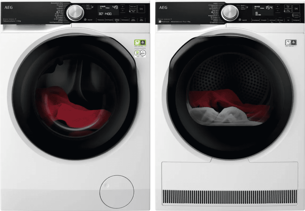 <p>Met de AEG LR9716C8 AbsoluteCare + AEG TR979M8CS AbsoluteCare ProSteam was en droog je grote ladingen was veilig en energiezuinig.</p>rn<p><strong>Wasmachine</strong><br>rnJe kleding blijft langer mooi in deze wasmachine. Het AbsoluteCare systeem onthardt het water met zout. Dit is beter voor je kleding. Als je snel een muf overhemd wilt opfrissen, kies je voor het ProSteam programma. Hierdoor verfris je je overhemd met stoom zonder deze eerst te wassen. Met energieklasse A-20% bespaar je tot wel € 270,- op je energiekosten over de levensduur.</p>rn<p><strong>Wasdroger</strong><br>rnJe vermindert je strijkwerk met deze AEG warmtepompdroger. De ProSteam stoomfunctie zorgt voor minder kreukels in je kleding. Zo gaan je favoriete T-shirts snel weer de kast in. Zelfs je wollen truien blijven mooi in deze droger dankzij de speciale trommelbewegingen van de machine. Je bespaart met energieklasse A+++ tot wel € 1.150,- op je energiekosten over de levensduur. </p>