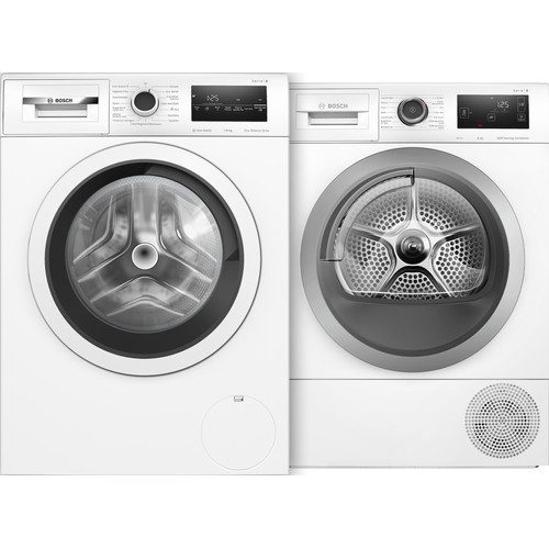 <p>Je wast en droogt middelgrote ladingen zeer energiezuinig met de Bosch WAN28272NL + Bosch WTU87675NL wasmachine en droger set.</p>rnrn<p><h5>Wasmachine</h5>rnMet een vulgewicht van 8 kilogram was je het beddengoed van één tweepersoonsbed of kleding van een paar dagen. Dankzij het Iron Assist programma verminder je tot wel 50% van je kreukels met stoom. Dat scheelt jou weer strijkwerk. Wil je vanavond je favoriete outfit aan, maar ben je die vergeten te wassen? Met de SpeedPerfect functie kort je het wasprogramma tot wel 65% in.</p><br> rnrn<p><h5>Wasdroger</h5>rnNa het wassen droog je al je natte kleding in één keer in de droger. Dankzij energieklasse A+++ bespaar jij flink op je energiekosten, zelfs bij een kleine lading. De droger past het programma altijd aan op de hoeveelheid was. Heb je last van allergieën? Kies dan voor het AllergyPlus programma. Dankzij de zelfreinigende condensor heb je minder onderhoud en schoonmaakwerk. Daarnaast blijft de droger altijd even zuinig werken.</p>rn