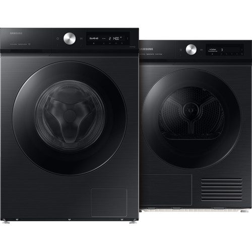 <p>Kies voor een ruime, stijlvolle en energiezuinige wasmachine en droger set met de Samsung WW11DB7B34GBU3 Bespoke + Samsung DV90BB7445GBS2 Bespoke.</p>rn<p><strong>Wasmachine</strong><br>rnJe hebt extra veel ruimte voor je was dankzij het vulgewicht van 11 kilogram. Zo prop je je beddengoed niet in de trommel en blijft dit langer mooi. Je wast extra hygiënisch met het stoomprogramma, dat bacteriën en allergenen doodt met stoom. Zo is de wasmachine ook geschikt als je een gevoelige huid hebt. Je wast tot 20 procent zuiniger dan energieklasse A.</p>rn<p><strong>Wasdroger</strong><br>rnDe droogtrommel is met 9 kilogram vulgewicht ruim genoeg voor een flinke stapel handdoeken of lakens. Deze droog je zeer energiezuinig dankzij energieklasse A+++. Over de levensduur bespaar je gemiddeld tot € 1.150,- op je energiekosten. Koppel je droger met AI Control aan je wasmachine en krijg een melding wanneer alles schoon en droog is.</p>rn
