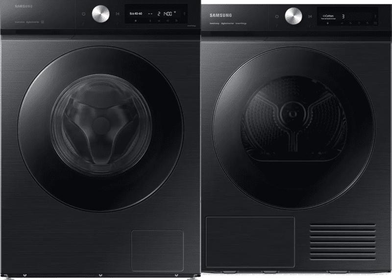 <p>Je wast en droogt een grote hoeveelheid wasgoed in één keer met de Samsung WW90DB7U94GBU3 en Samsung DV90BB7445GBS2.</p>rnrn<p><strong>Wasmachine</strong><br>rnMet de Samsung WW90DB7U94GBU3 Bespoke AI Wash blijft je kleding langer mooi. Het programma doseert het wasmiddel en de wasverzachter automatisch, zodat je altijd de juiste hoeveelheid gebruikt en je kleding zijn kleur behoudt. Dankzij het vulgewicht van 9 kilogram heb je genoeg ruimte om veel wasgoed in één keer te wassen.</p>rnrn<p><strong>Droger</strong><br>rnIn de Samsung DV90BB7445GBS2 droger droog je kleding voor een hele week. De Bespoke droger heeft een minimalistisch en modern uiterlijk met een plat, digitaal bedieningspaneel. Voor snel drogen gebruik je het Super Speed-programma. Dankzij de QuickDrive-functie droog je je favoriete outfit in slechts 81 minuten.</p>rn