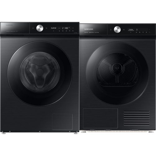 <p>Je wast en droogt grote ladingen wasgoed snel en energiezuinig met de Samsung WW90DB8U95GBU3 Bespoke QuickDrive + Samsung DV90BB9445GBS2 Bespoke wasmachine en droger set. </p>rn<p><strong>Wasmachine</strong><br>rnJe hebt snel een volle trommel schone was. Dankzij QuickDrive was je namelijk 2 keer zo snel en verbruik je tot 20 procent minder energie. AI Wash doseert het wasmiddel automatisch, zodat jij nooit te veel of te weinig gebruikt. Zo blijft jouw kleding langer mooi. Met 9 kilogram vulgewicht heb je genoeg plek voor je beddengoed. Je wast dit door energieklasse A-30% energiezuinig schoon.</p>rn<p><strong>Wasdroger</strong><br>rnJe droogt al je beddengoed in één keer in de ruime 9 kilogram trommel. Heb je haast en wil je snel een paar schone shirts? Met het Super Speed programma is een halfvolle trommel droog in 81 minuten. Dankzij AI Dry krimpt je kleding niet. De droger past de droogtemperatuur en -tijd aan op de lading. Zo droog jij ook kleinere ladingen energiezuinig. </p>rnrn
