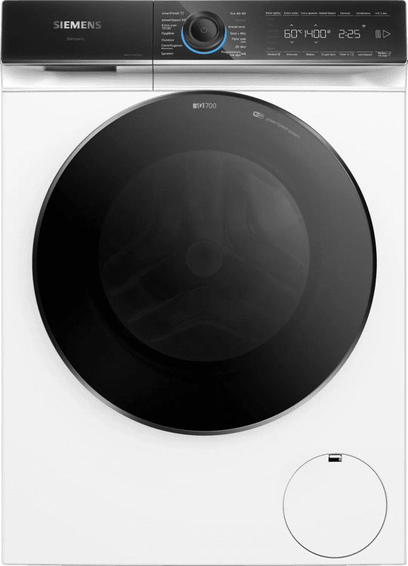 Je wast grote ladingen beddengoed en kleding extra energiezuinig schoon met de Siemens WG44G20BNL (iQ700) wasmachine. Dankzij energieklasse A-50% bespaar je tot wel € 370,- over de levensduur. Met het powerSpeed 59' programma was je een halve trommel grondig schoon binnen één uur. Dat scheelt jou wastijd. Wil je strijkwerk verminderen en je gedragen overhemden opfrissen? Kies dan voor het smartFinish programma. Dit vermindert kreukels met stoom, waardoor jij tijd overhoudt. Bij vervelende vlekken gebruik je de vlekkenfunctie. Hiermee verwijder je veel voorkomende vlekken zoals gras, bloed of rode wijn goed uit je kleding. Via de Home Connect app download je extra wasprogramma's. Daarnaast bedien je de wasmachine gemakkelijk via je smartphone.