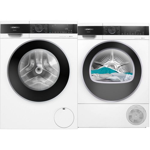<p>Met de Siemens WG44G2ZBNL + Siemens WQ45G270NL wasmachine en droger set was en droog je grote ladingen wasgoed.</p>rnrn<p><h5>Wasmachine</h5>rnMet 9 kilogram vulgewicht was je grote ladingen beddengoed, kleding of handdoeken in één keer. De wasmachine past het programma aan op iedere lading. Een kleine was is dus geen probleem. Met het smartFinish programma verwijder je kreukels uit je droge overhemden en shirt. Dat scheelt jou weer strijkwerk. Duurt je wasprogramma te lang? Kort dit dan in met varioSpeed.</p><br> rnrn<p><h5>Wasdroger</h5>rnNa het wassen past al je was in de droogtrommel. Je kiest uit 1 van de 14 droogprogramma's voor je kleding. Heb je last van allergieën? Kies dan het hygiëneprogramma. Dit verwijdert bacteriën en allergenen grondig uit je was. Gebruik het Extra Snel 40' programma voor je favoriete outfit. Zo trek je het snel aan. Na het drogen spoelt de condensor automatisch schoon. Dat scheelt jou onderhoud en zorgt ervoor dat de droger altijd even zuinig blijft.</p>rn
