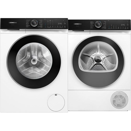 <p>Met 9 kilogram vulgewicht van de Siemens WG44H2A5NL + Siemens WQ45H2B5NL wasmachine en droger set doe je grote wasbeurten in één keer </p>rnrn<p><h5>Wasmachine</h5>rnDe trommel is ruim genoeg voor grote ladingen beddengoed of opgespaarde kleding. intelligentDosing doseert iedere wasbeurt automatisch de juiste hoeveelheid wasmiddel. Zo blijft je kleding langer mooi. Met smartFinish verminder je kreukels in je droge kleding met stoom. Dat scheelt jou weer strijkwerk. Via de HomeConnect app download je extra wasprogramma's en bedien je de wasmachine ook op afstand.</p><br> rnrn<p><h5>Wasdroger</h5>rnAl je wasgoed past in één keer in de droogtrommel. De intelligentDry functie kiest automatisch het beste droogprogramma op basis van je wasprogramma. Heb je last van allergieën? Het hygiëneprogramma verwijdert bacteriën en allergenen grondig uit je was. Na het drogen spoelt de condensor automatisch schoon. Zo heb je minder schoonmaakwerk en blijft de droger altijd even energiezuinig. </p>rn