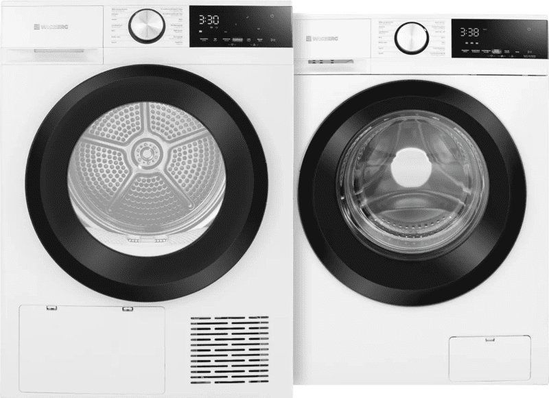 <p>Je wast en droogt grote ladingen energiezuinig met de Wisberg WBWM1400A9WNB + Wisberg WBDR9A3WNB wasmachine en wasdroger set. </p>rnrn<p><h5>Wasmachine</h5>rnJe hebt ruimte voor een grote lading beddengoed of kleding van de hele week dankzij 9 kilogram vulgewicht. Heb je maar een kleine lading was? De machine past het verbruik en programma automatisch aan. Bij een vervelende vlek kies je de anti-vlekkenfunctie. Denk bijvoorbeeld aan rode wijn of bloed. Gebruik bij allergieën het stoomprogramma. Hiermee verwijder je bacteriën en allergenen grondig uit je was.</p><br>rnrn<p><h5>Wasdrogers</h5>rnJe droogt alle natte was in één keer. Je kiest uit 14 verschillende droogprogramma's, zoals katoen, jeans of beddenlakens. Met de meegeleverde condensafvoerslang voer je het water gemakkelijk af via de afvoer. Zo leeg je het reservoir nooit. Dankzij energieklasse A+++ droog je zeer zuinig en bespaar je tot € 115,- per jaar op energiekosten.</p>rn
